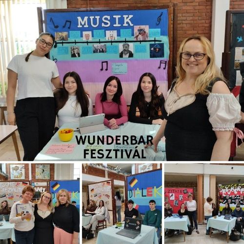 Április 24-én került megrendezésre iskolánkban a Wunderbar fesztivál. Több diák készült különböző előadásokkal, összesen 6 standon vártuk az érdeklődőket. A fesztivál célja a német nyelv népszerűsítése volt, ezért olyan témákat dolgoztunk fel, melyek német vonatkozásúak voltak és megfeleltek, hogy érdekesen tudjuk a nyelv szépségeit ismertetni diáktársainkkal. A 12.I. osztályból Prátser Korinna Sarah Connor “Wie schön du bist” dalát is elénekelte, ezzel hozzájárulva a fesztivál hangulatához. A nap folyamán mindannyian pozitív élményekkel gazdagodtunk és jó alkalom volt arra is, hogy nyelvtudásunkat gyakoroljuk. Kollár Daniella 11. i osztályos tanuló beszámolója